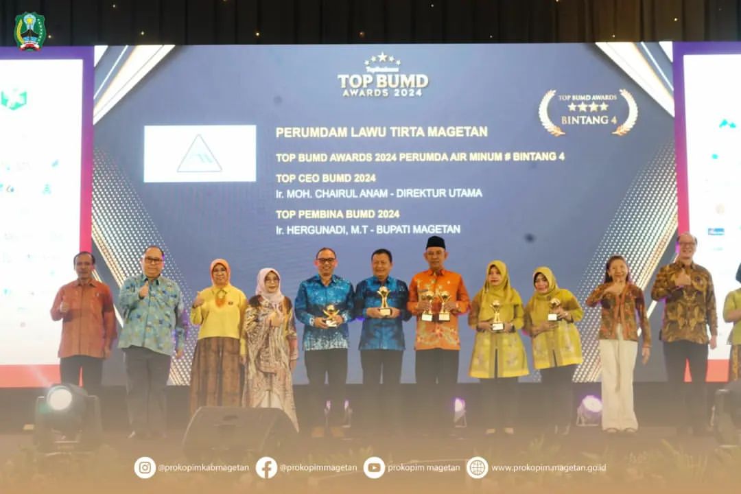 Magetan Kembali Borong Penghargaan pada TOP BUMD Awards 2024. Sahabat Prokopim, Dalam TOP BUMD Awards 2024 yang digelar di Hotel Rafles Jakarta, Rabu (20/3/2024), empat penghargaan diberikan kepada Kabupaten Magetan yakni TOP Pembina BUMD 2024, TOP CEO BUMD 2024 BPRS Magetan dan TOP CEO BUMD 2024 Perumdam Lawu Tirta Magetan. . Penghargaan diterima langsung oleh […]